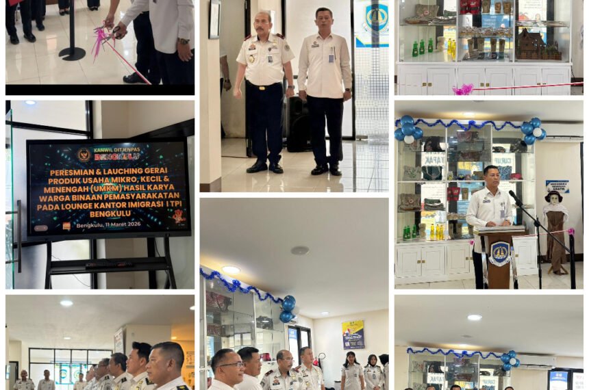 Bengkulu – 12 Maret 2026, Kantor Wilayah Direktorat Jenderal Pemasyarakatan (Kanwil Ditjenpas) Bengkulu bekerja sama dengan Kantor Wilayah Direktorat Jenderal Imigrasi (Kanwil DitjenImigrasi) Bengkulu meresmikan gerai produk UMKM hasil karya Wa...