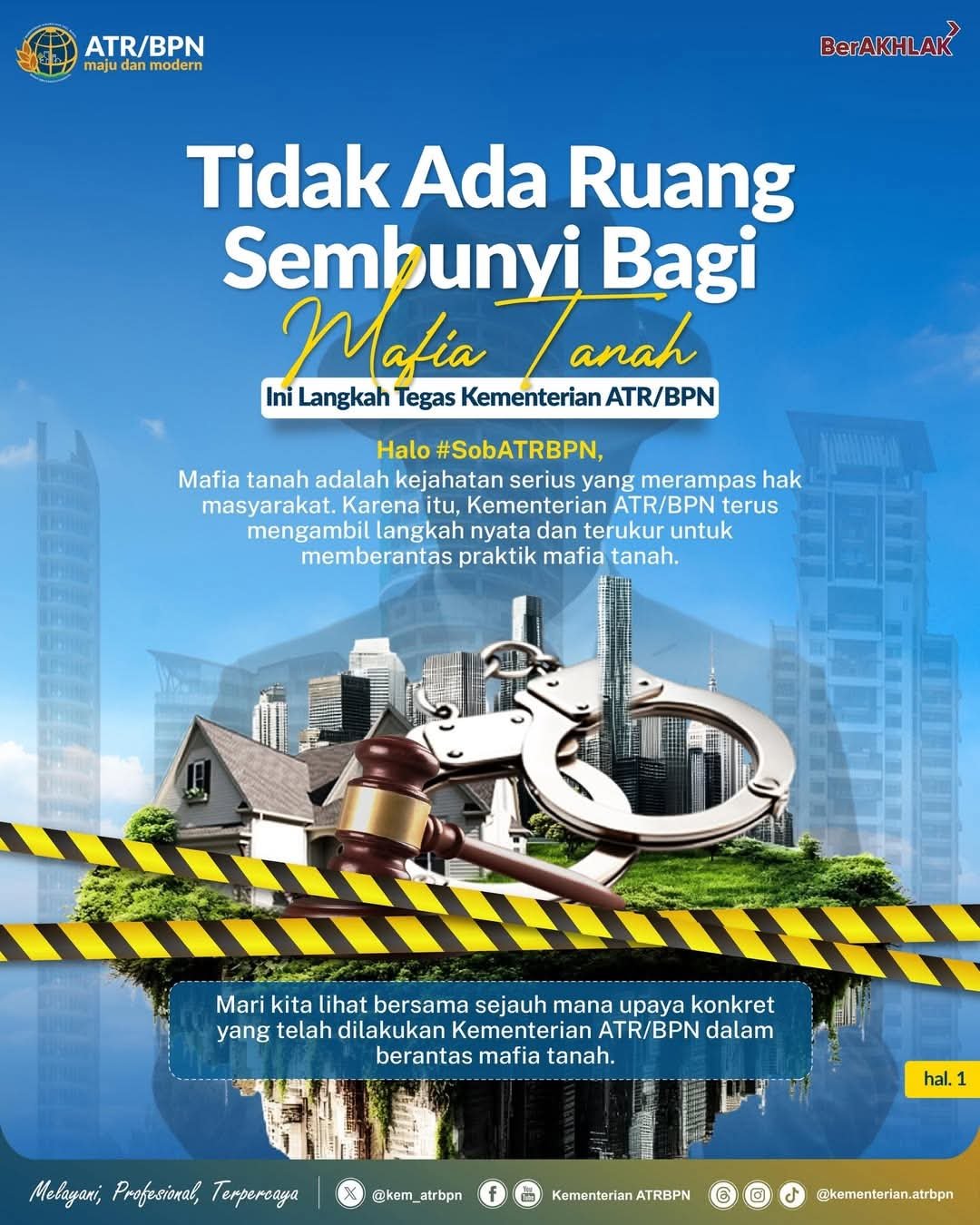 Kementerian ATR/BPN juga aktif dalam mengungkap dan menyelesaikan kasus mafia tanah di berbagai daerah, serta mengamankan aset negara yang terlibat dalam praktik tersebut.