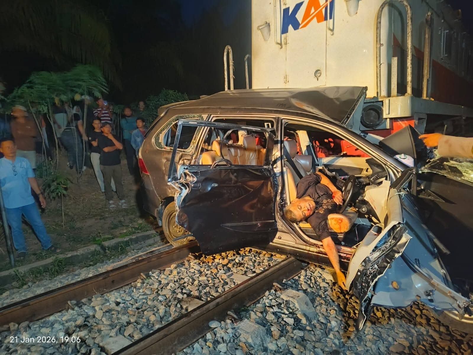 “Kejadiannya sangat cepat. Mobil Avanza itu sepertinya tidak menyadari ada kereta api yang datang. Tidak ada palang pintu di sini, jadi memang sering terjadi kecelakaan,” tambah Suherry, warga sekitar.
