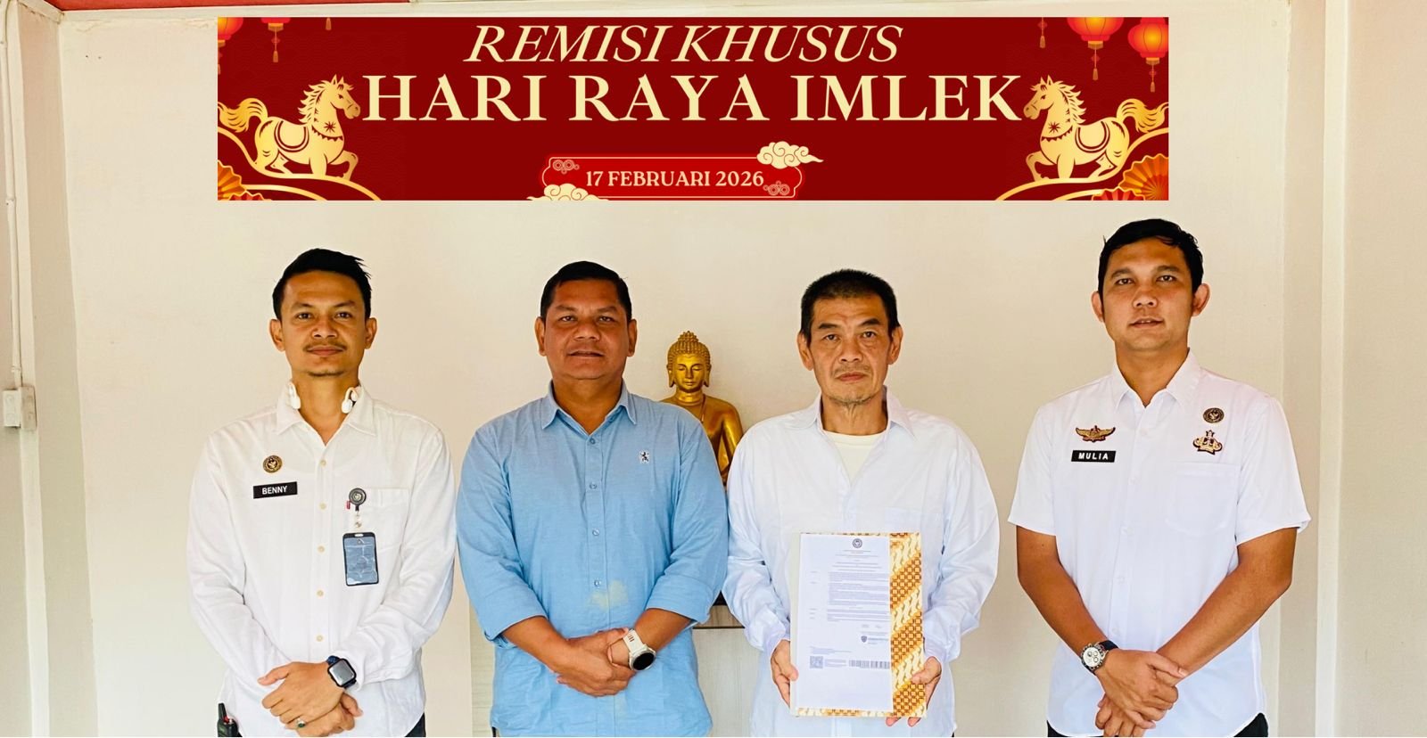 Batu Bara – Lembaga Pemasyarakatan (Lapas) Kelas IIA Labuhan Ruku memberikan Remisi Khusus (RK) Hari Raya Imlek kepada satu orang warga binaan beragama Konghucu, Selasa (17/2). Pemberian remisi ini merupakan bentuk penghargaan negara kepada warga binaan yang telah menunjukkan perubahan perilaku dan memenuhi persyaratan administratif serta substantif sesuai ketentuan yang berlaku.