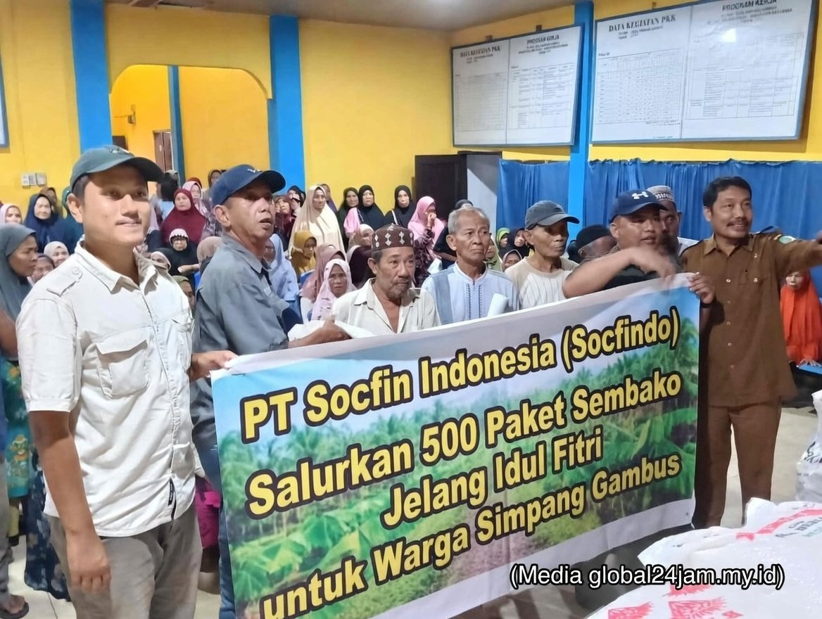 Batu Bara, global24jam.my.id – Menyambut Hari Raya Idul Fitri 1447 Hijriah, PT Sofin Indonesia (Socfindo) Perkebunan Tanah Gambus kembali melaksanakan program tanggung jawab sosial dengan menyalurkan 500 paket sembako kepada masyarakat kurang mampu di Desa Simpang Gambus, Kecamatan Lima Puluh, Kabupaten Batu Bara, pada Senin (16/03/2026).