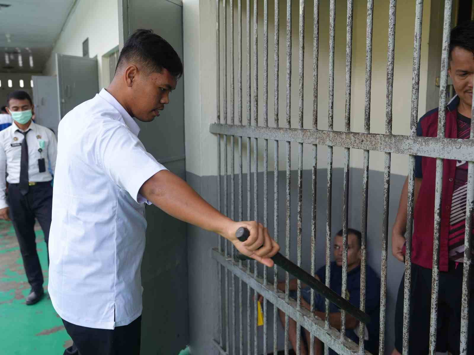 Pengecekan teralis dilakukan secara teliti untuk memastikan struktur besi tetap kokoh, tanpa adanya kelonggaran, perubahan bentuk, atau kerusakan pada sambungan-sambungan besi. Setiap sudut dan titik rawan diawasi langsung petugas untuk memastikan tidak terdapat celah yang dapat mengancam keamanan rutan.